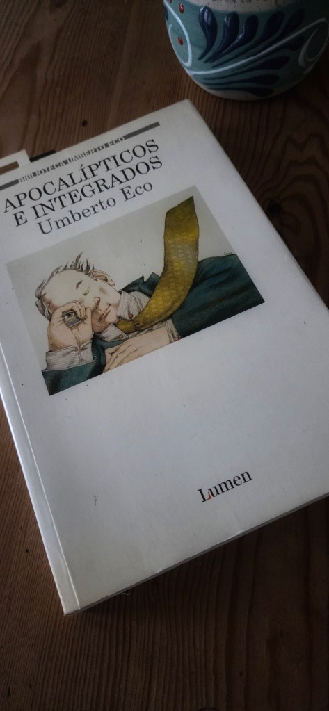 Pensando en esta división de nuestra opinocracia, esta semana volví a la lectura de Apocalípticos e integrados, que no habla de política sino de interpretación cultural. Publicada en 1964, esta obra de Umberto Eco se compone de una serie de reflexiones sobre las reacciones que los intelectuales de la época tenían ante la cultura de masas y los medios de comunicación. Dada la fecha en la que se escribió, los temas de este volumen se centran en la incursión de la televisión, la música popular y los cómics dentro del debate público. Para Eco, los críticos de la cultura pueden dividirse en dos categorías muy marcadas: por un lado los «apocalípticos» y por el otro los «integrados».